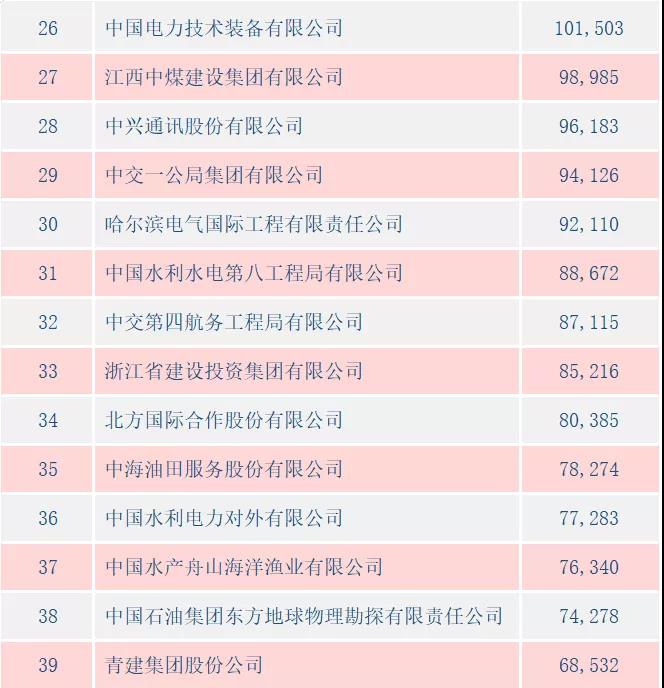 2月24日,商务部发布2020年中国对外承包工程100强榜单,中鼎国际连续第三年入选,在对外承包完成额100强榜单中位列82名,比上年度95名前进了13位;首次进入对外承包新签额100强榜单,位列100名。