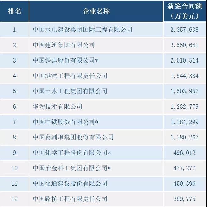 2020年中国对外承包新签额100强